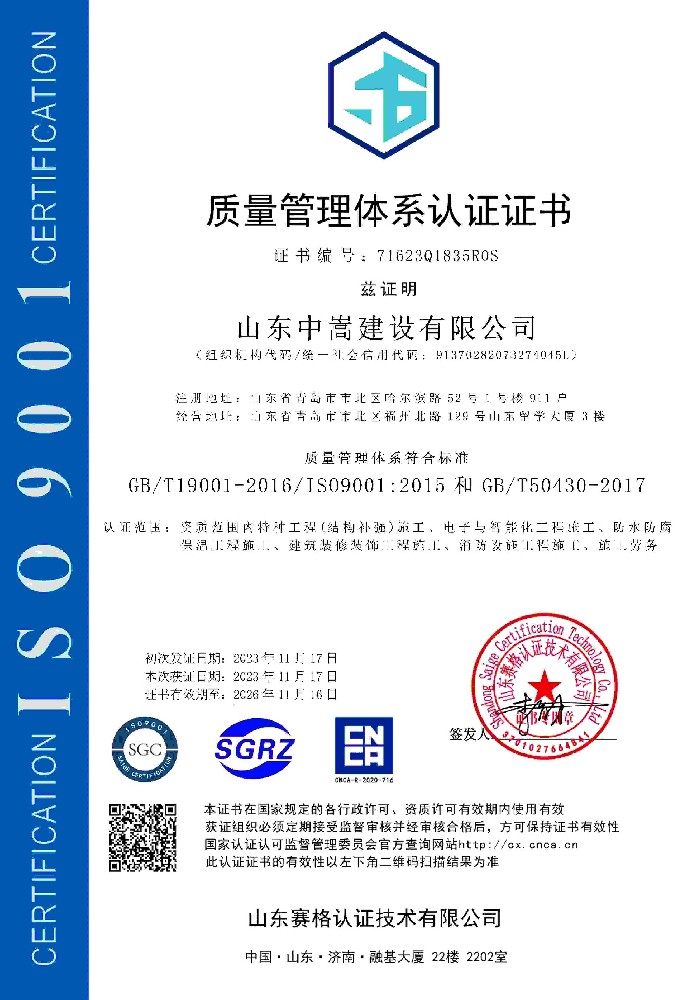 山東中嵩建設有限公司以建筑勞務施工為根本,專業從事特種工程、建筑裝修裝飾工程、電子與智能化工程、結構補強加固工程等技術服務為主業的綜合性、多元化建筑公司。自2013年發展至今,山東中嵩憑借自身雄厚實力和良好的信譽保障,相繼完成了加固改造...