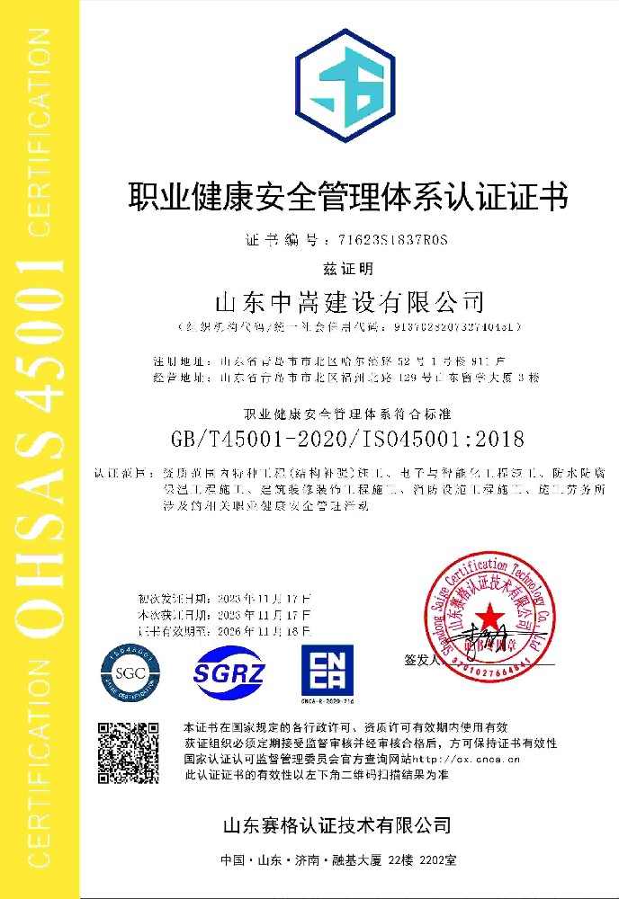 • 山東中嵩建設有限公司-OHSMS證書中文